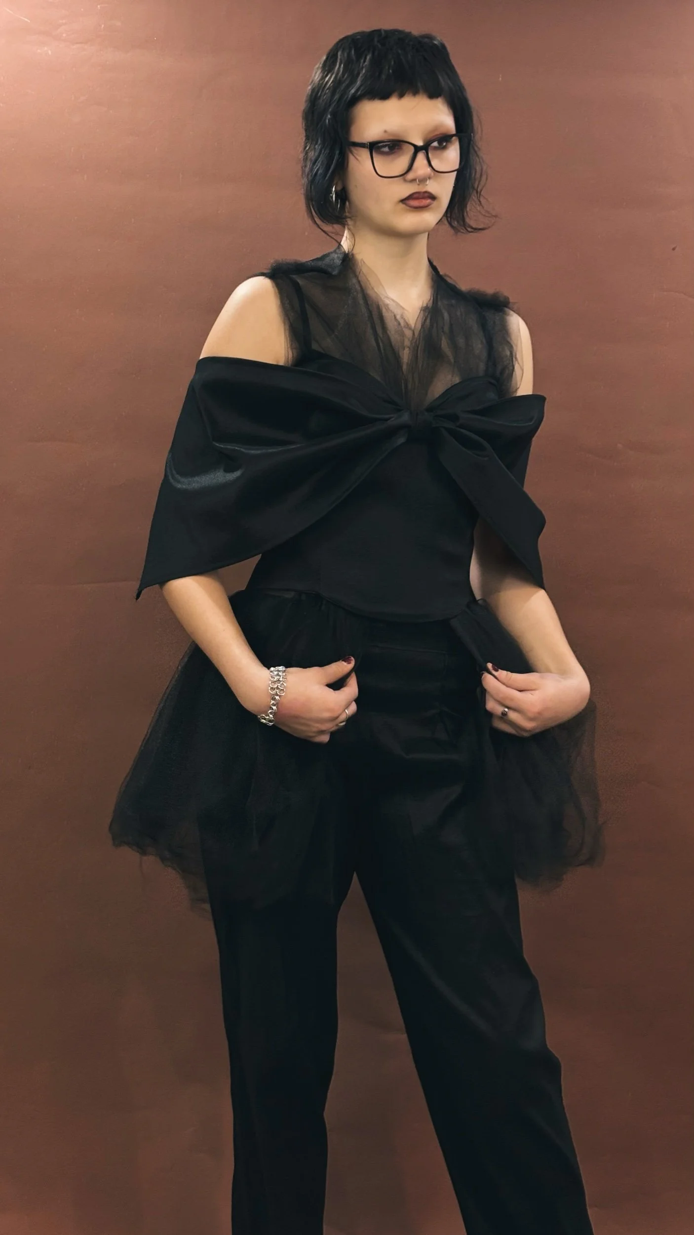 Our stunning stretch taffeta fabric carefully crafted into a wavy swing skirt design. Full skirt with back zipper closure. Multiple colorways make this a perfect statement piece. Worn with the satin and chiffon blouse.